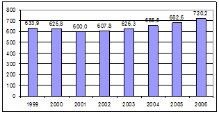 В российской практике существование малого предпринимательства было разрешено в 1988 г. Таким образом, как самостоятельное общественно-политическое и социально-экономическое явление малое предпринимательство в нашей стране существует уже 20 лет и в настоящее время переходит от стартового к этапу глубокого и качественного развития. Данные по изменению количества малых предприятий в 1999 – 2006 годах приведены на рис. 1.