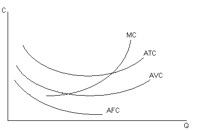Рис. 1. Постоянные, переменные и общие издержки фирмы