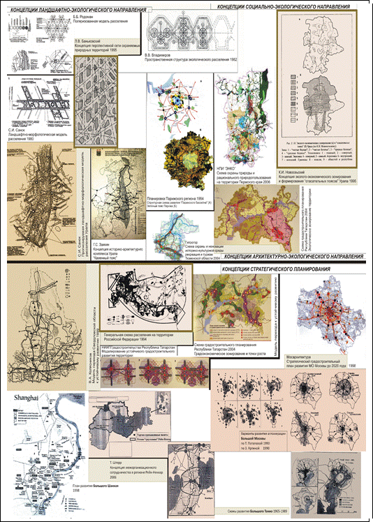 На развитие теории и практики расселения большое значение оказали четыре урбанистические концепции: линейного города, параллельного города и, позже, регионального города, динамического города. (Приложение 2).