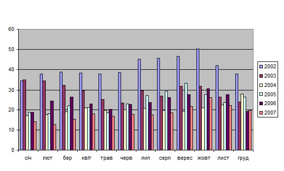 Рис.3.2 Виробництво продукції з незбираного молока за період 2002-2007 рр., тис. тон.