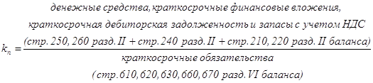 Коэффициент текущей ликвидности характеризует общую обеспеченность предприятия оборотными средствами для ведения хозяйственной деятельности и своевременного погашения срочных обязательств предприятия и по методике расчета представляет собой коэффициент покрытия, рассмотренный выше.