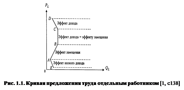Кривая предложения труда отдельным индивидом изображена на рис. 1.1.