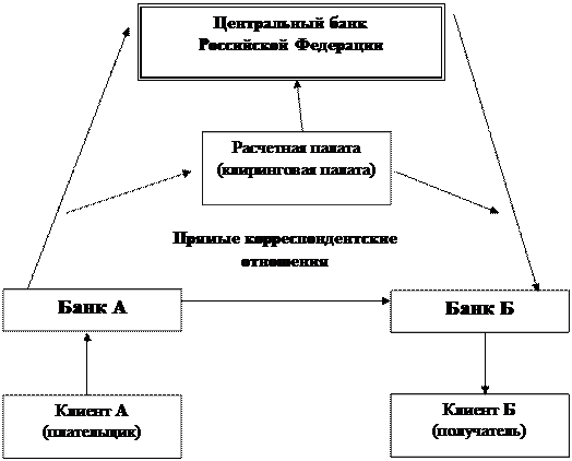 Чтобы предприятия, имеющие счета в различных банках, могли рассчитаться друг с другом, необходимо производить расчеты между банками. Таким образом, схему осуществления платежа можно представить в следующем виде: