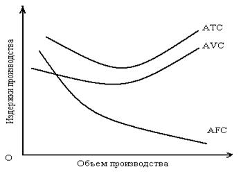 Наглядно особенности изменения средних издержек в зависимости от количества произведенной продукции в краткосрочном периоде можно показать на следующем графике (Рис. 6.).