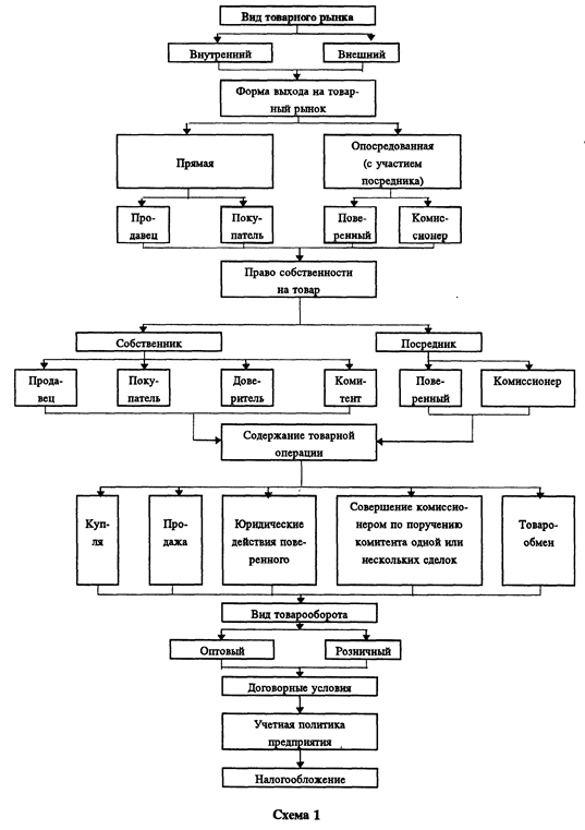 форма выхода на товарный рынок: прямая (продавец или покупатель) или опосредованная (с участием посредника: поверенного или комиссионера);