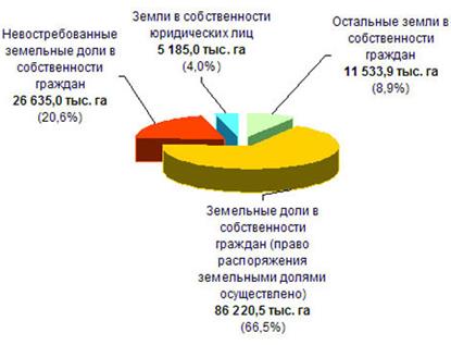 РАСПРЕДЕЛЕНИЕ ПРИВАТИЗИРОВАНЫХ ЗЕМЕЛЬ РФ