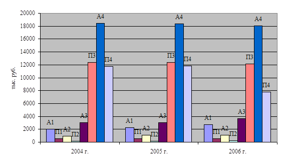 - изучение положений финансовой устойчивости на основании изучения абсолютных финансовых показателей в динамике за 2004-2006 г.;
