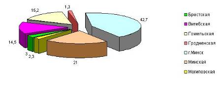 Структура иностранных инвестиций по областям Республики Беларусь за 2008 год приведена в диаграмме (рис. 3.4):
