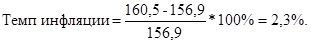 Темп инфляции для любого года можно вычислить следующим образом. На пример: вычесть индекс цен 1997 г. из индекса 1996 г., разделить эту разницу на индекс этого года (1997 г.), а затем, с тем чтобы выразить полученный результат в процентах, умножить его на 100%. Например, в 1996 г. индекс цен на потребительские товары был равен 156,9, а в 1997 г. - 160,5. Следовательно, уровень инфляции для 1997 г. вычисляется следующим образом: