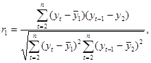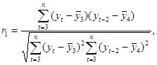 В качестве переменной х мы рассмотрим ряд y2 , y3 , … , yn ; в качестве переменной у – ряд y1 , y2 , . . . ,yn – 1 . Тогда приведённая выше формула примет вид: