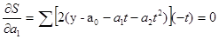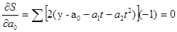 Показатели а0 , а1 и а2 представляют собой в каждом отдельном случае выравнивания постоянные величины, называемые параметрами : а0 –начальный уровень; а1 – начальная скорость ряда и а2 – ускорение или вторая скорость.