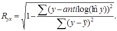 Индекс корреляции используется для проверки существенности в целом уравнения нелинейной регрессии по F-критерию Фишера: