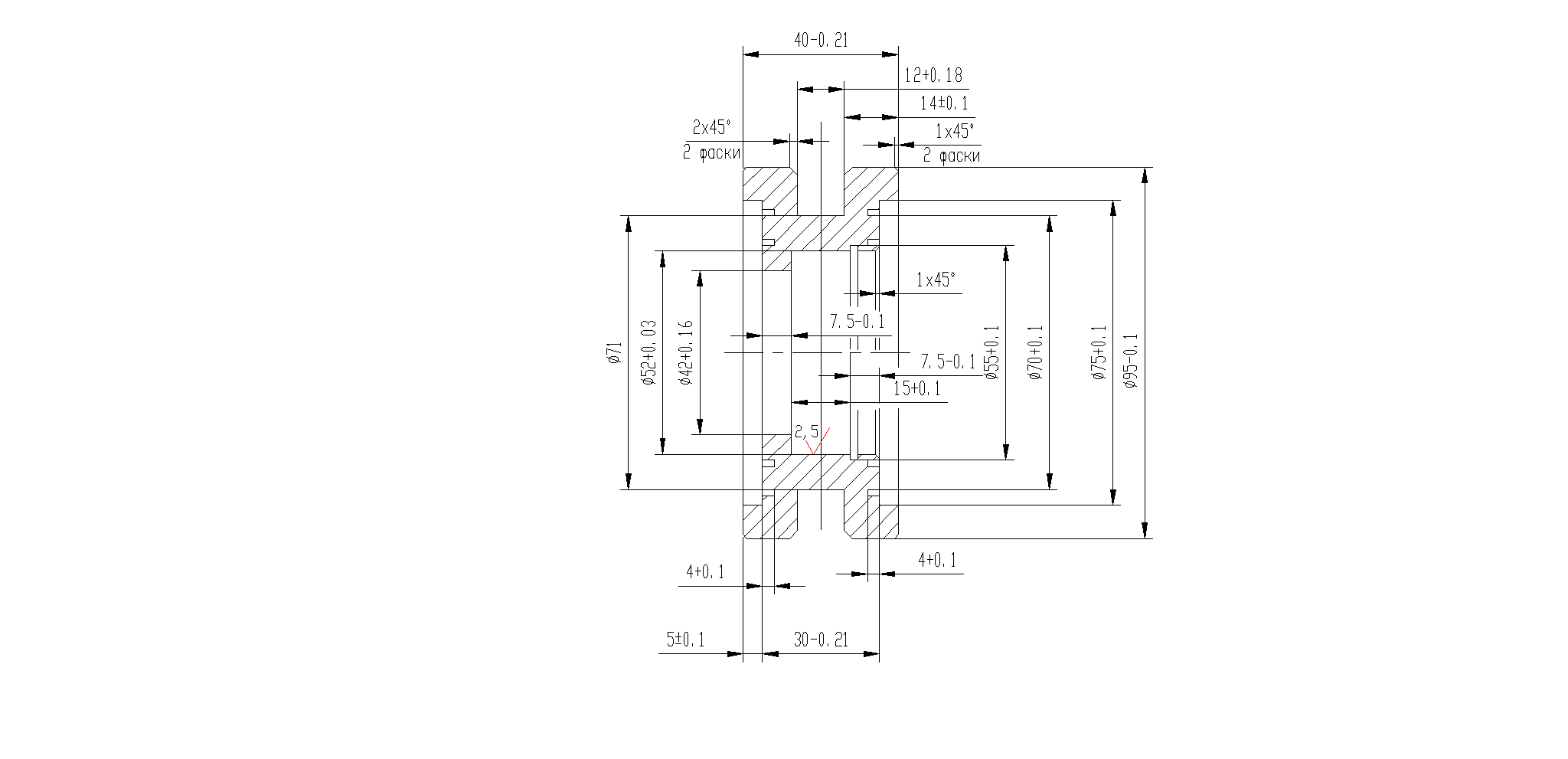 выточки в торцах ролика 75+0,1 глубиной 4+0,1 мм, Rz20;