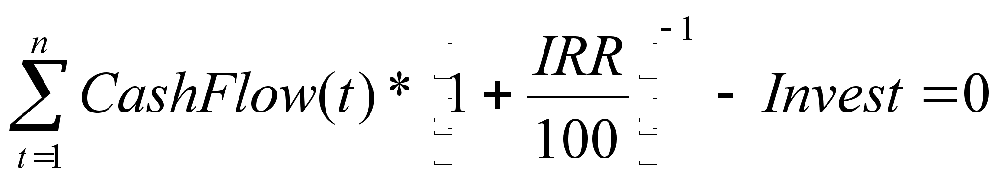 Внутренняя норма доходности определяется как дисконтированный множитель, приводящий разновременные значения баланса к началу реализации проекта. Она является минимальной величиной процентной ставки, при которой занятые средства окупятся за жизненный цикл проекта и должна быть не менее процентной ставки по кредиту. Для данного проекта внутренняя норма доходности (IRR) равна 33,3% (ставка кредитования 30%).