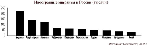 13. См.: Красинец Е., Кубишин Е., Тюрюканова Е. Нелегальная миграция в Россию. М., 2000. Иностранные мигранты в России (тысячи) Источник: Госкомстат, 2002 г.