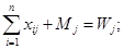 Для расчёта целевой функции задачи выбора номенклатуры и определения необходимого количества каждого вида взаимозаменяемого исходного сырья для выполнения плана выпуска продукции в заданном ассортименте (в определенных соотношениях её видов) при минимальных издержках производства (при минимальной себестоимости продукции) нам необходимо аj, xji, bij и![]()