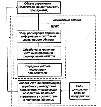 При этом БУИС могут использовать помимо традиционных форм учета еще и новую автоматизированную форму учета, которая полностью отвечает основным требованиям применения вычислительной техники и принципам бухгалтерского учета и отчетности. БУИС, являясь системой поддержки принятия решений бухгалтером, обеспечивает функцию учета при управлении объектом (промышленным предприятием, учреждением, организацией и пр.).