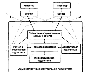 Рис. 16. Обобщенная схема функциональных подсистем биржи: