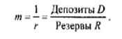 где г — норма резервирования, исчисляемая как отношение резервов R к депозитам D: