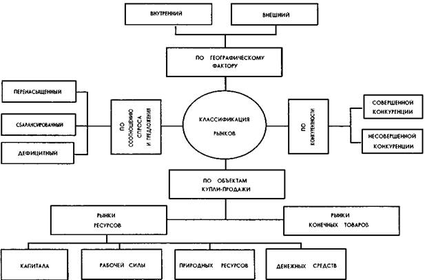 а) по географическому фактору. Можно говорить о рынке внутреннем, когда отношения обмена осуществляются контрагентом на территории своей страны, и внешнем, когда он действует на территории другого государства. В свою очередь, внутренний рынок можно подразделить на ряд региональных рынков;