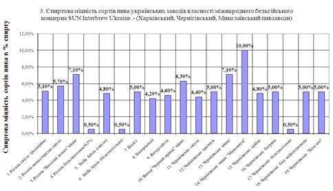 Пивний ринок за основними товарними якостями пива може бути розподілений на 5 основних сегментів за показником спиртової міцності пива: