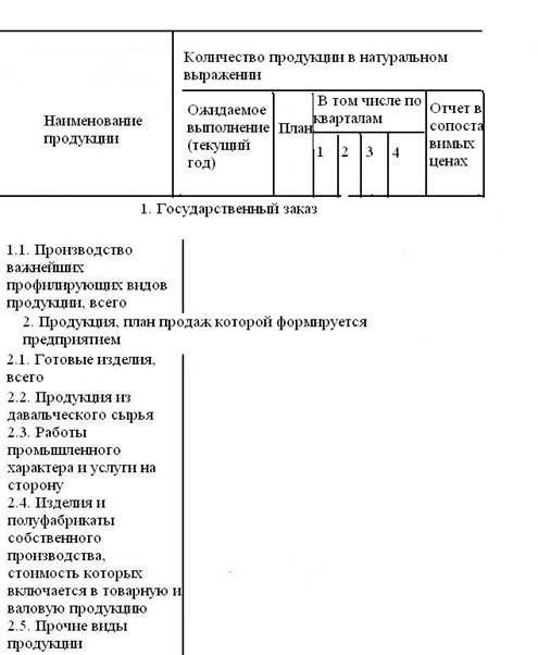 Основным стоимостным показателем этого раздела плана является реализованная продукция (валовой доход). Реализованной считается продукция, оплаченная покупателем или сбытовой организацией, готовые товары или товарная продукция, запасные части и полуфабрикаты, работы и услуги, предназначенные для удовлетворения потребностей покупателей. Готовая продукция включает полностью изловленные изделия и выполненные работы, соответствующие стандартам, техническим условиям, рабочим чертежам, договорам с потребителями , требованиям заказчиков, показателям качества. Кроме того, она служит основой формирования производственной программы предприятия, организаций, фирм и корпораций. Ее объем как стоимость предназначенных к поставке по плану и подлежащих оплате заказчиком готовых изделий и полуфабрикатов собственного производства , запасных частей всех видов и назначении, товаров народного потребления, выполняемых работ и оказываемых услуг, реализуемых в соответствии с хозяйственными договорами с потребителями продукции или через собственную сбытовую сеть.