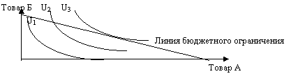 Графическое изображение различных комбинаций двух экономических благ, имеющих одинаковую полезность для потребителя, называется кривой безразличия (U).