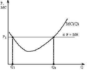 Рассмотрим условия максимизации прибыли совершенно конкурентной фирмой.