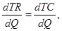 При объёме выпуска, максимизирующем прибыль, предельная выручка должна быть равна предельным издержкам [7, c.455]:
