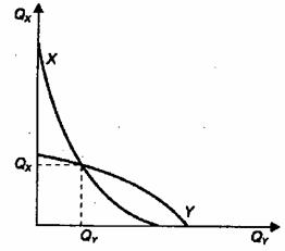 Объединив оба графика, получим кривые реакции обеих фирм на поведение друг друга. На рис. 3.4 кривая Х отражает реакцию одноименной фирмы на изменения в производстве фирмы У, а кривая У - соответственно наоборот. Равновесие наступает в точке пересечения кривых реакций обеих фирм. В этой точке предположения фирм совпадают с их реальными действиями.