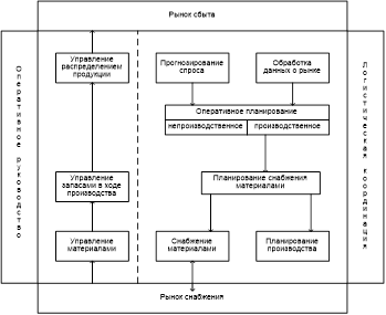 В рамках координационных функций логистики выделилось еще одно из ее направлений — оперативное планирование, продиктованное стремлением сократить запасы, не снижая эффективности производственной и сбытовой деятельности фирм. Суть его состоит в том, что на основании прогноза спроса, корректируемого позднее при поступлении реальных заказов, разрабатываются графики перевозок и в целом порядок управления запасами готовой продукции, который в итоге и определяет планирование производства, разработку программ снабжения его сырьем и комплектующими изделиями.