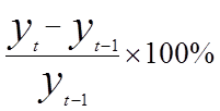 Также отметим, что индикатором фаз цикла выступает показатель темпа экономического роста, который выражается в процентах и рассчитывается по формуле:
