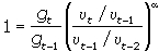 Равенство выполняется только при хt = хt-1 = хt-2 = 1. Это значит, что динамическое равновесие достигается при полном использовании производственных мощностей. В этом случае, как следует из формулы, уровень цен растет с постоянным темпом, который в соответствии с уравнением равен