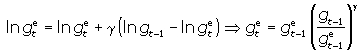 Для определения ожидаемой в текущем периоде величины роста уровня цен Д. Лайдлер использует концепцию адаптивных ожиданий, в соответствии с которой существовавшее в предшествующем периоде предположение о степени роста уровня цен корректируется с учетом ошибки прогноза (разницы между фактическим и ожидавшимся ростом)