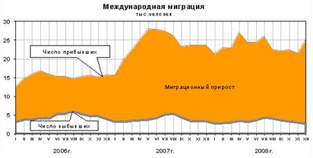Сокращение численности населения происходило из-за естественной убыли населения, которая в 2008 г. уменьшилась по сравнению с 2007 г. на 106,8 тыс.человек. Увеличившийся миграционный прирост на 66,6% компенсировал численные потери населения.