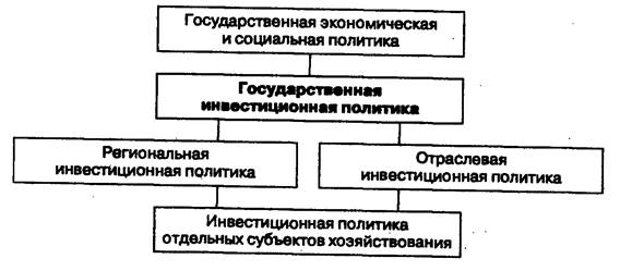 Инвестиционная политика государства – комплекс взаимосвязанных целей и мероприятий по обеспечению необходимого уровня и структуры капиталовложений в экономику страны и отдельные ее сферы и отрасли, повышению инвестиционной активности всех основных агентов воспроизводственной деятельности: населения, предпринимателей и государства, инвестиционная политика – это деятельность государства, направленная на изыскание источников инвестиций и установление рациональных областей их использования.