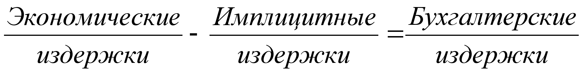 Различают издержки экономические и бухгалтерские. Под экономическими издержками понимаются все виды выплат фирмы поставщикам за используемые ресурсы. Они состоят из двух видов: внешних (явных, или денежных) и внутренних (неявных, или имплицитных).