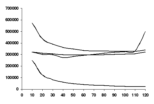 Взаимосвязь валовых, средних и предельных расходов является ключевым моментом в теории издержек, лежащим в основе расчетов оптимального объема производства, минимизации затрат и максимизации прибыли. Например, на АООТ «Биохимик» внутренние и внешние факторы производства остаются неизменными, в том числе и цены на ресурсы и продукцию. Используются только два ресурса: постоянный — капитал в сумме 4385541 (FC) и переменный .