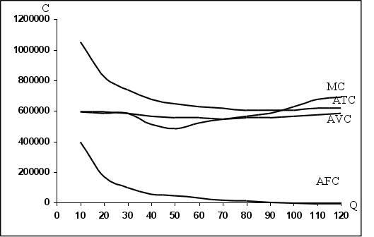 • средние валовые издержки или полная себестоимость единицы изделия АТС, которые определяют как сумму средних переменных и средних постоянных издержек или как частное от деления валовых издержек на объем выпуска (их графическое выражение в приложении 3).