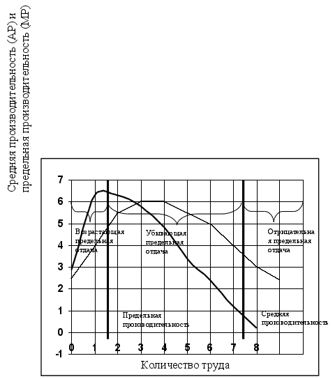 В самой общей форме ответ на этот вопрос дает закон убывающей отдачи, который также называется "законом убывающего предельного продукта", или "законом изменяющихся пропорций". Этот закон утверждает, что, начинам с определенного момента, последовательное присоединение единиц переменного ресурса (например, труда) к неизменному, фиксированному ресурсу (например, капиталу или земле) дает уменьшающийся добавочный, или предельный, продукт в расчете на каждую последующую единицу переменного ресурса.