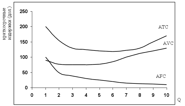 • средние переменные издержки AVC, исчисляемые путем деления переменных издержек на объем производства;