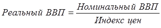 Номинальный ВВП рассчитывается в ценах текущего года, а реальный ВВП - в сопоставимых (то есть постоянных, базисных) ценах, что дает возможность оценить изменение физического объема выпуска за определенный промежуток времени. На величину номинального ВВП оказывают влияние два процесса: