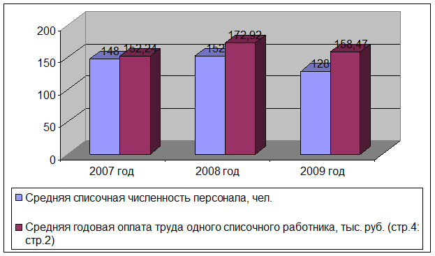 Рисунок 1.2- Динамика численности персонала и среднегодовой оплаты труда в 2006 – 2009 годах