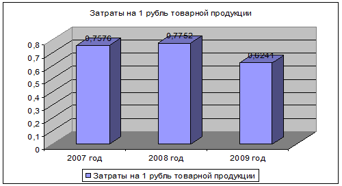 Себестоимость реализованной продукции в 2009 году снизилась на 0,1511 руб. на руб. продаж. Это произошло в результате изменения структуры реализованной продукции – уменьшение на 0,0751 руб. на руб. затрат, изменения цен в сторону увеличения – на 0,0046 руб. на руб. затрат, но наибольшее влияние оказало снижение себестоимости за счет изменения цен реализованной продукции, позволившего снизить себестоимость на 0,0806 руб. на руб. затрат.