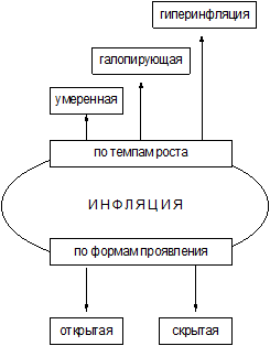 По степени интенсивности инфляционных процессов (по темпам роста цен) различают четыре вида инфляции рис.1: