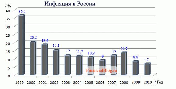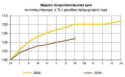 Инфляция в 2010 году составила 4,8% (за 7 месяцев, с января по июль включительно). Прогноз от Минэкономразвития – 7,5%.