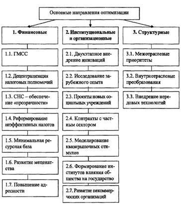 2. Институциональные и организационные преобразования. Данные пути оптимизации включают в себя преобразования самих субъектов, отношений между субъектами институциональной среды. А также отдельно необходимо рассматривать "технологии" внедрения институциональных преобразований.