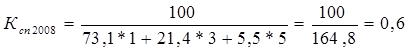 Данные таблицы показывают, что в 2009 году выручка и себестоимость у нас равны, т.е. себестоимость 1 ц зерна и цена реализации одинаковы. Если мы освоим выявленные резервы мы сможем уменьшить себестоимость 1 ц зерна на 177,7 руб. в результате чего сумма выручки у нас будет больше полной себестоимости зерна и мы сможем получить 397,8 тыс. руб. прибыли. Порог рентабельности в 2009 году равен сумме выручки и себестоимости т.е. мы реализовали безубыточный объем продукции (нет не прибыли ни убытка) и у нас нет запаса финансовой прочности. Если освоим резервы, порог рентабельности будет равен 318 тыс. руб., запас финансовой прочности составит 1304 тыс. руб. или 80,4 %. Т.о. ООО "Мосальская Нива" может выдержать снижение выручки от продаж на 1304 тыс. руб. (на 80,4%) не увеличив при этом величину непокрытого убытка (который на данный момент в организации составляет 346 тыс. руб.).