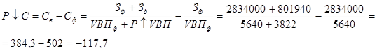 6. В п.3.1 на основе выявленных резервов мы смогли снизить себестоимость продукции на 117,7 руб., поэтому в п.3.2 мы попробовали рассчитать, как это повлияет на запас финансовой прочности.