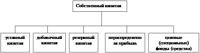 Собственный капитал состоит из уставного, добавочного и резервного капитала, нераспределенной прибыли и целевых (специальных) фондов (рис.1). Коммерческие организации, функционирующие на принципах рыночной экономики, как правило, владеют коллективной или корпоративной собственностью. Собственниками выступают юридические и физические лица, коллектив вкладчиков-пайщиков или корпорация акционеров. Уставный капитал, сложившийся как часть акционерного капитала, наиболее полно отражает все аспекты организационно-правовых основ формирования уставного капитала.